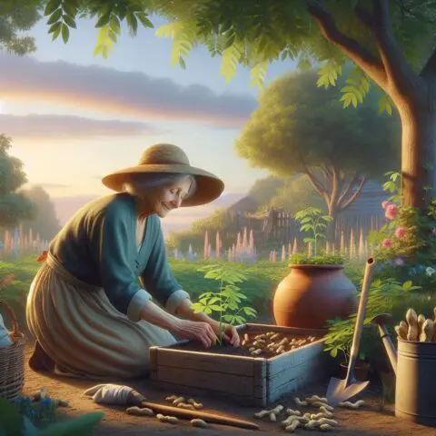 種まきは、地域によって異なりますが、一般的には5月から6月に行います。種は莢から取り出し、皮を剥かずにそのまま使用します。直径5cm、深さ2〜3cmの穴を作り、2〜3粒をまいて覆土します。発芽には約1週間かかります。