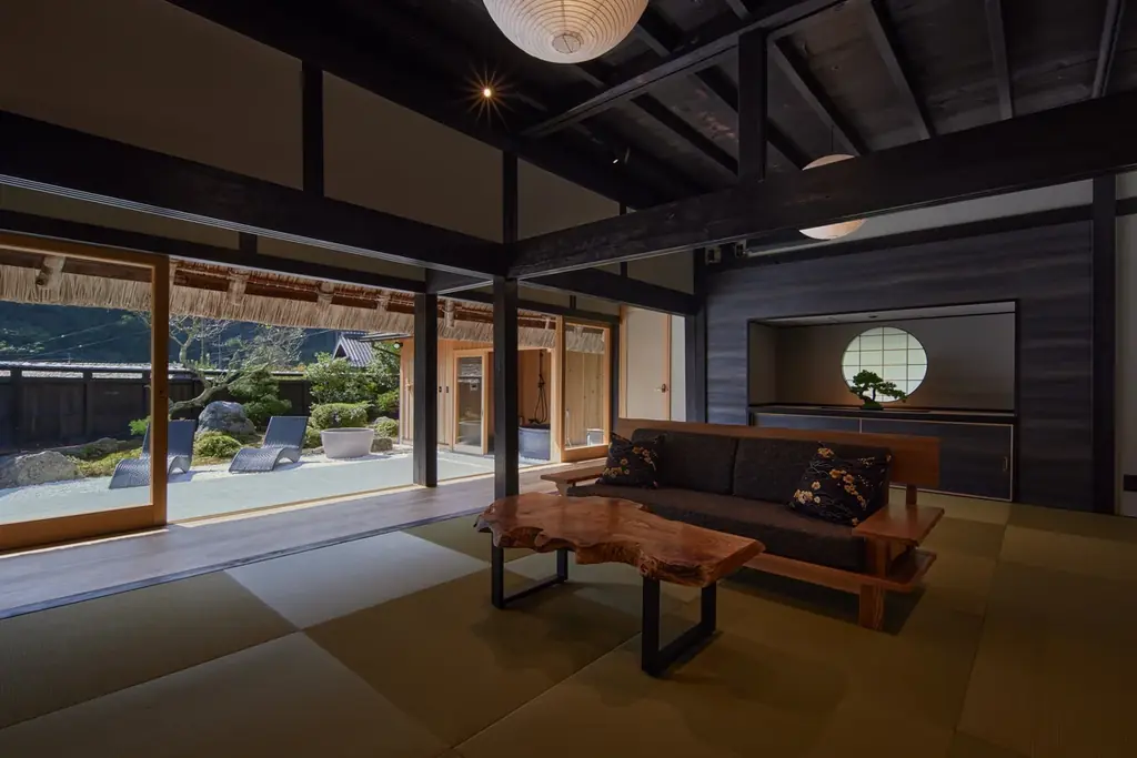 選定理由の一つは、美山が茅葺古民家と人の営みが連綿と受け継がれてきた土地であり、四季折々の自然の表情をじっくりと味わえる環境が残されている点です。かやぶき屋根や梁といった往時の姿を尊重し、現代の断熱や快適装備を加えることで、伝統と現代性を両立させています。