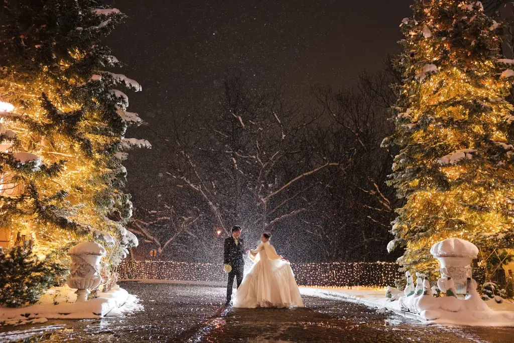 リリース本文では、藻岩シャローム教会の大聖堂、宮の沢白い恋人サッカー場、藻岩シャローム教会のイルミネーションといった具体的な場面名が並び、フォトウエディングのビジュアル面が強調されています。これらの記載は、ロケーションの多様性と北海道ならではの環境を示すものです。