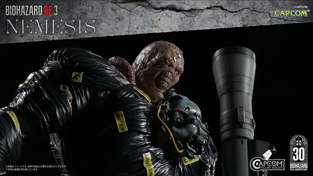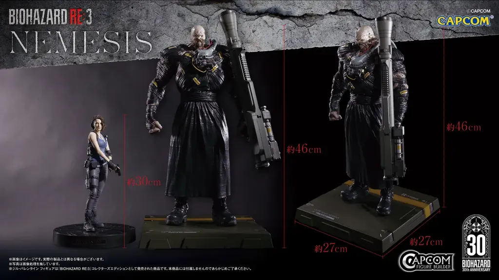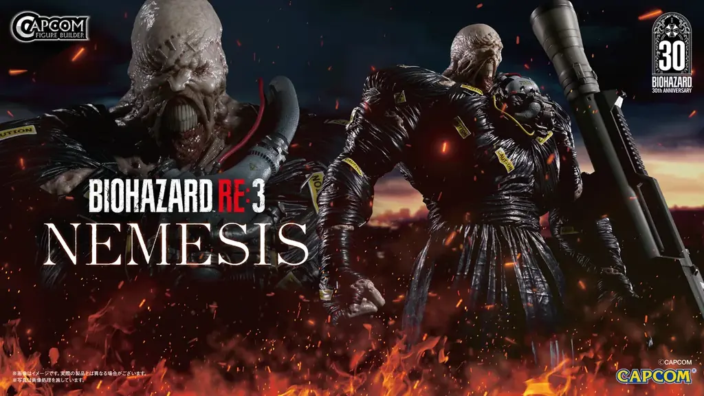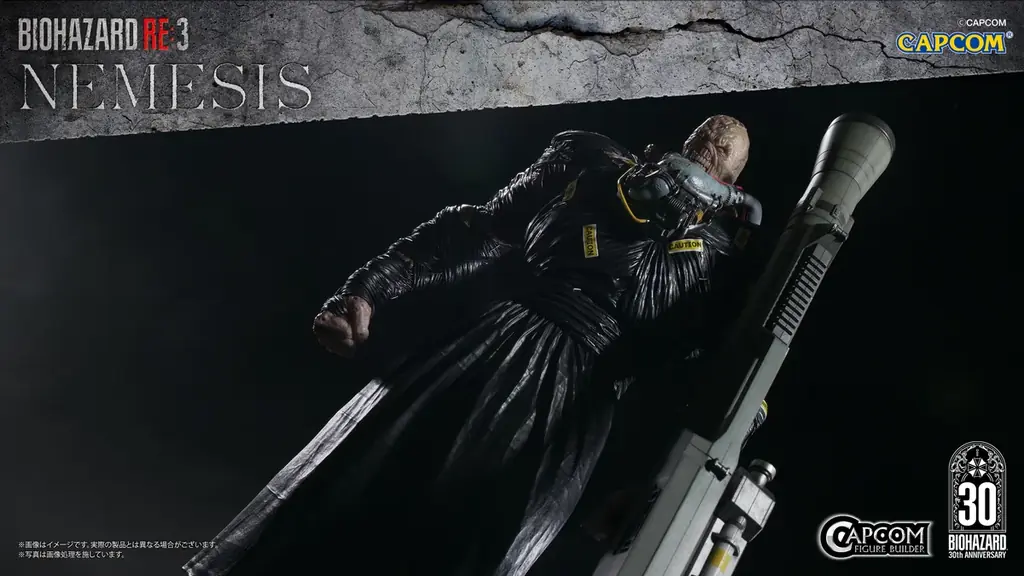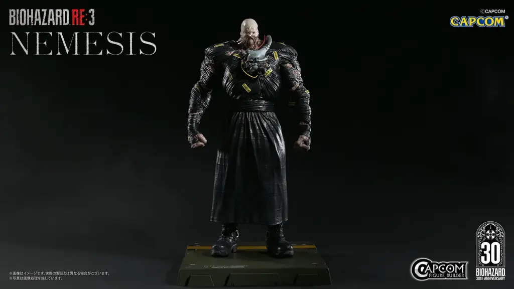 30周年記念商品の一つとして「カプコンフィギュアビルダー クリエイターズモデル ネメシス」が発表されました。リリースによれば、本商品は1/6のビッグスケールに相応しい精度で、シリーズを代表するB.O.W.であるネメシスを再現したフィギュアです。