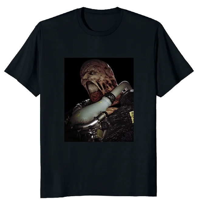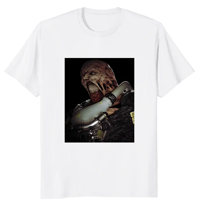 カプコン公式アパレルには、ネメシスのアートを前面に配置した新デザインがラインナップに追加されることが発表されました。発表によると、本デザインは本日から公式アパレルに加わる予定です。
