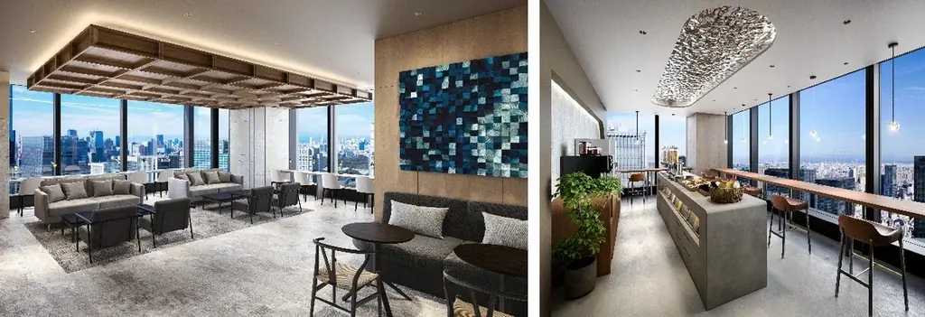 41階には町屋の軒並みをモチーフにした「レイワノマチヤ」デザインが採用され、温かみのある「Tokyo View Lounge」と、日本の主要ランドマークを一望できる「YAESU SKY LOUNGE」が設けられています。会員専用のClub Loungeではドリンクや軽食を楽しみつつ打ち合わせや休憩が可能です。