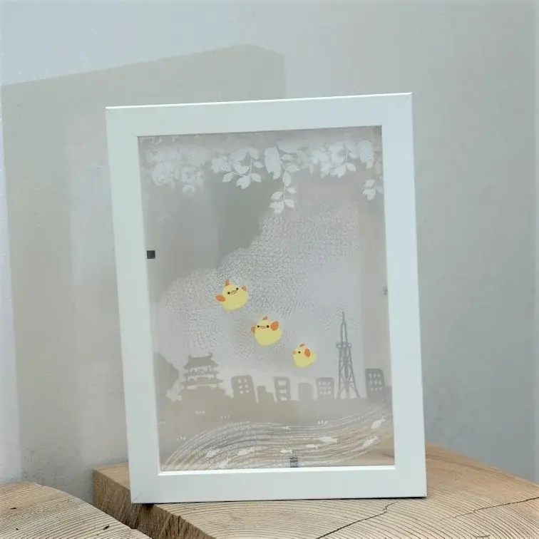 - 内容:近藤印刷のSDGsブランド「ethica」による限定ぴよりんイラストをあしらった重ね絵アート