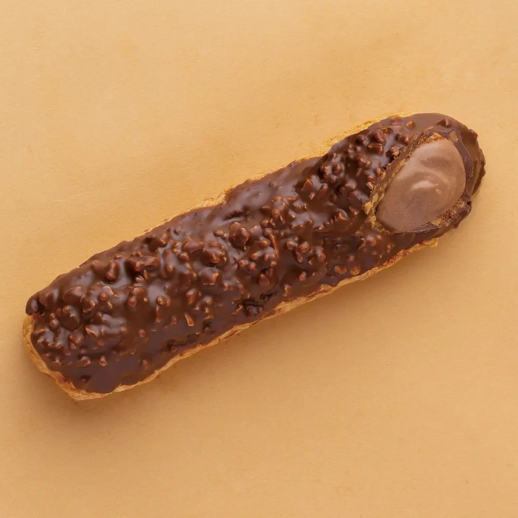 | 商品特徴 | ザックザクのクロッカン生地、アーモンドとパフ入りチョココーティング、カカオ香るコク深いチョコクリーム(クリーム内にバニラビーンズの黒い粒) |