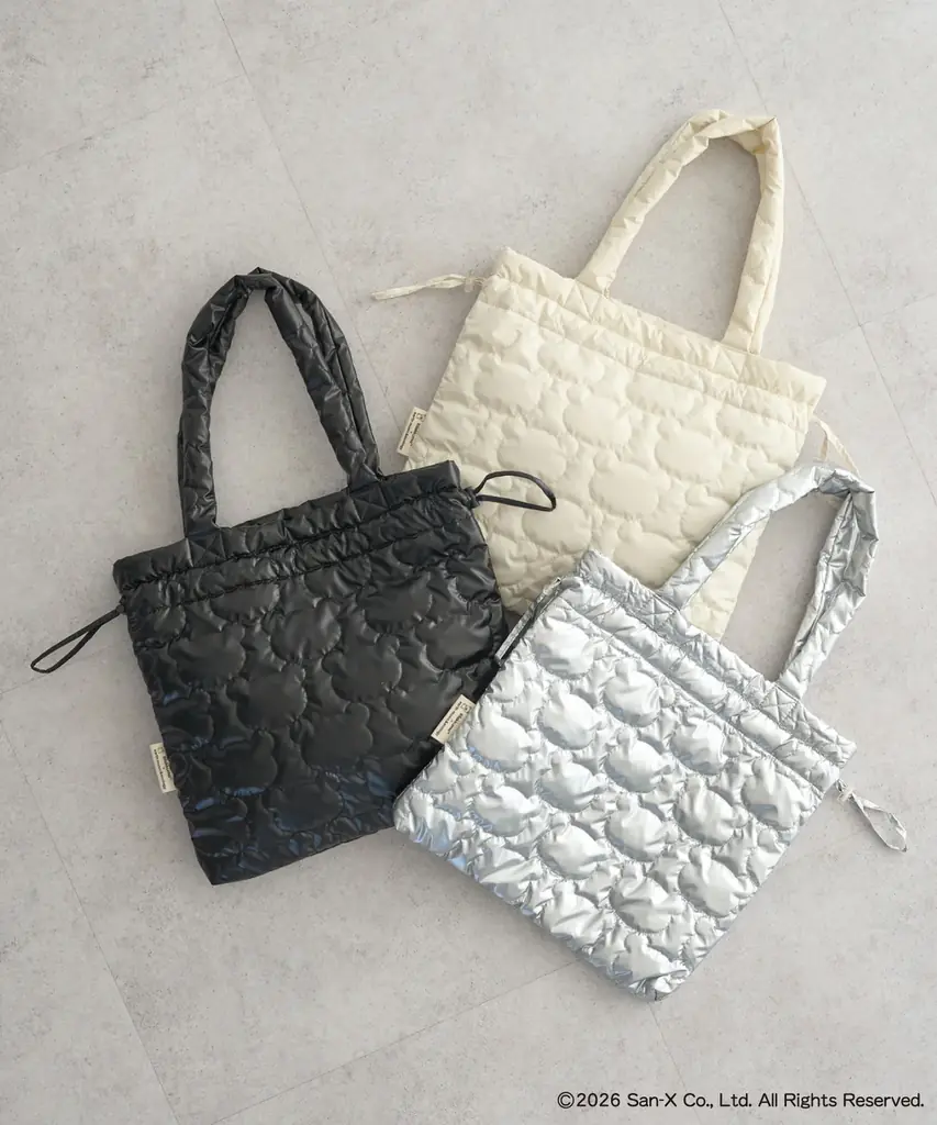 - カラー:Ivory / Silver / Black 価格:¥4,950 特徴:リラックマのシルエットをイメージしたキルティングを採用、容量と見た目の両立。