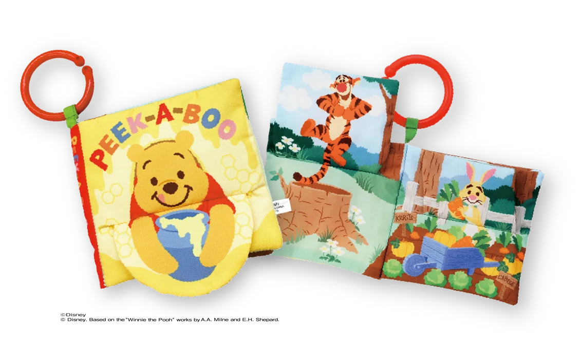 - めくってパリパリ いないいないばあ布えほん くまのプーさん:対象 6か月頃~、税抜価格 1,600円、税込価格 1,760円。フェア限定価格。