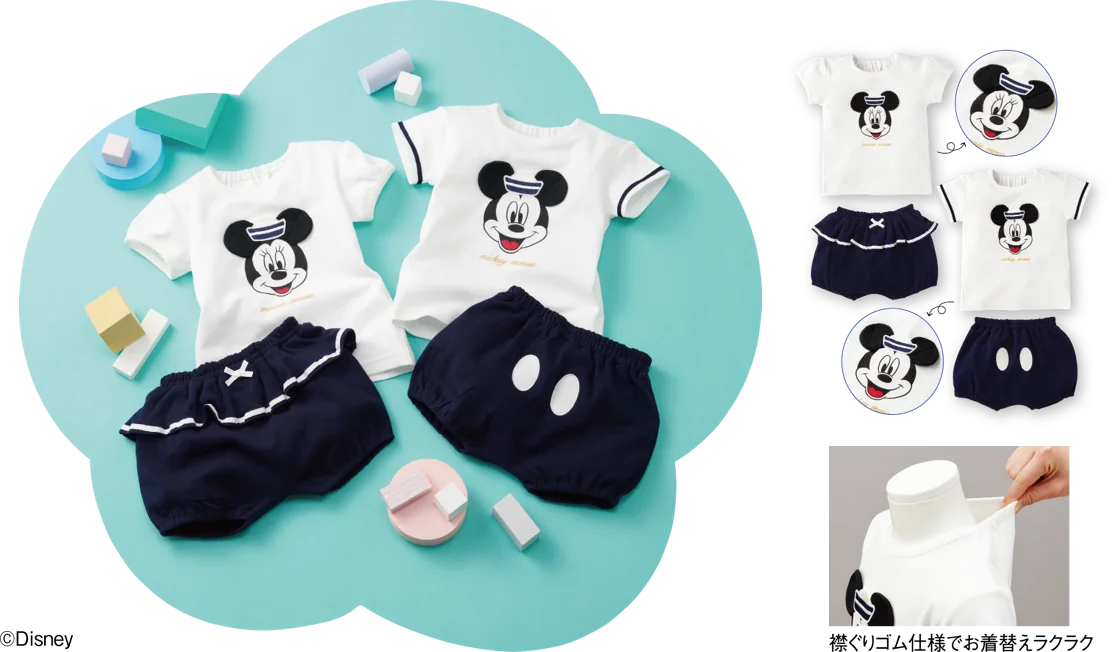 | 主なウェア | なりきりセット Tシャツ・ブルマ(70・80・90cm、2,980円/税込3,278円)、半袖Tシャツ(80・90・95cm、各1,580円/税込1,738円) |