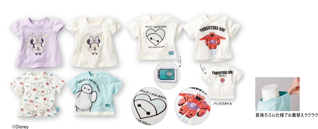おでかけに適したウェアや帽子は、動きやすさとデザイン性の両立が求められます。本フェアではディズニーキャラクターをあしらったアイテムを豊富に用意しています。