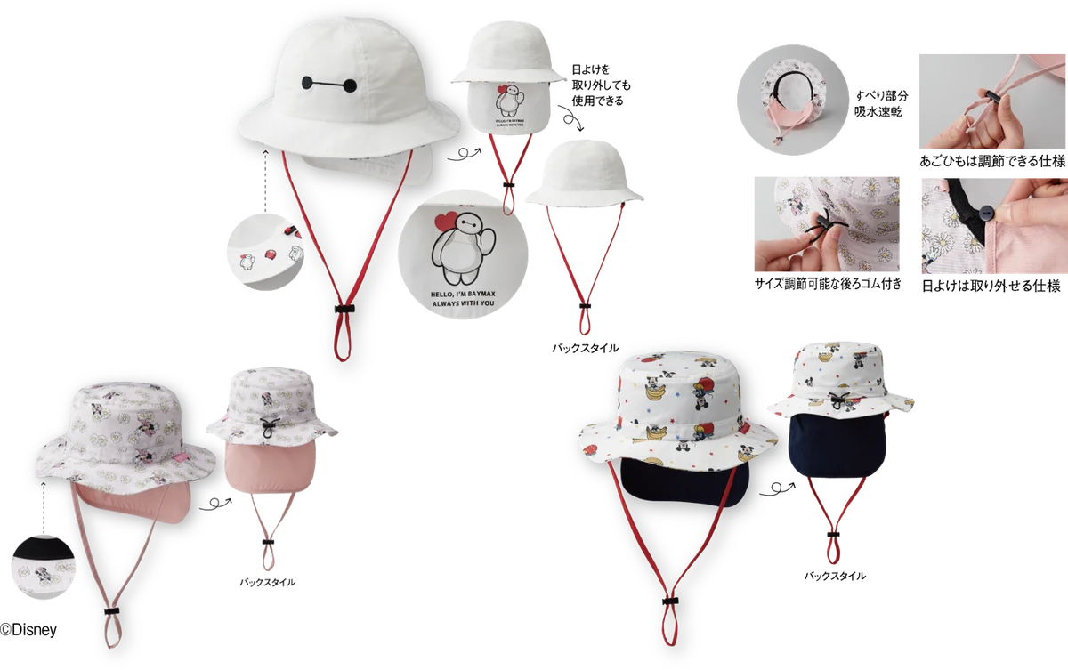 - サファリハット ディズニー・ベイマックス 吸水速乾:サイズ(約)50・52cm、税抜価格 2,480円、税込価格 2,728円。