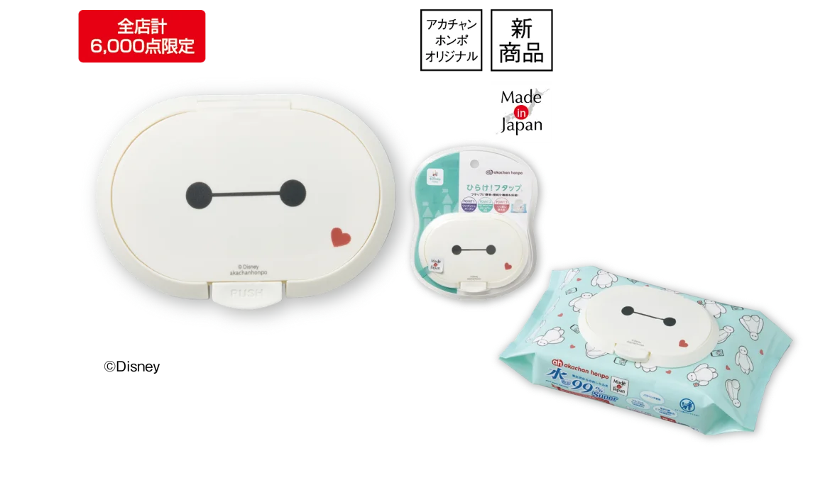 - ひらけ!フタップ(ワンプッシュオープン式フタ):税抜価格 498円、税込価格 547円。ベイマックスデザインが登場し、該当のおしりふきと組み合わせると見た目の統一感が出ます。