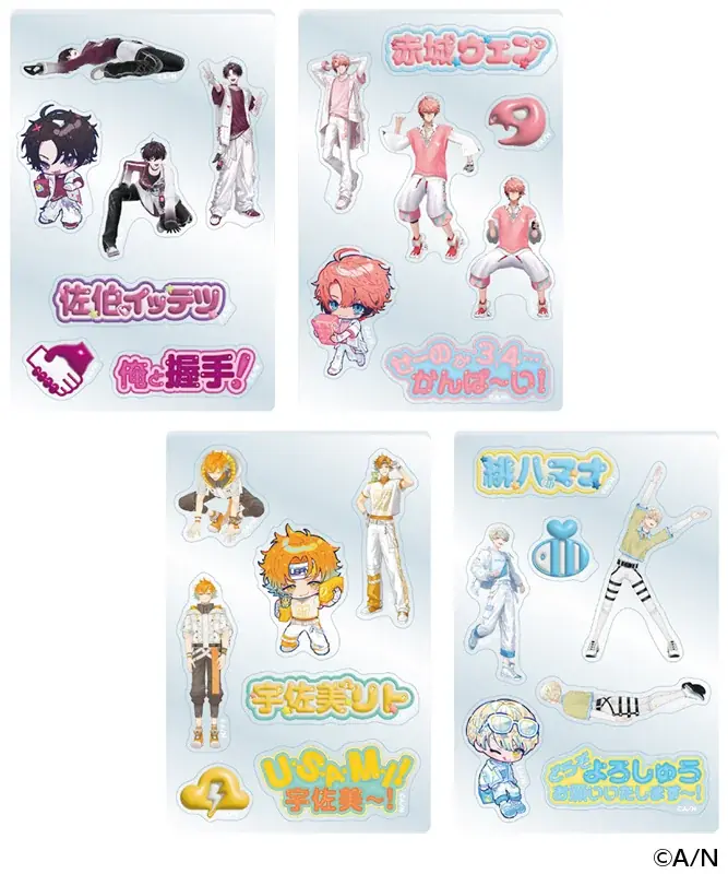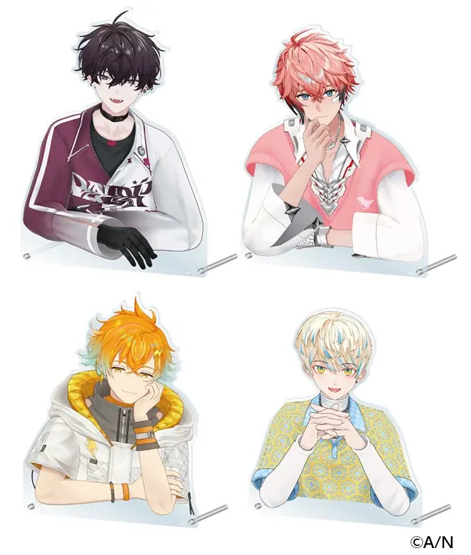 - 各商品は4種のキャラクター展開(佐伯イッテツ、赤城ウェン、宇佐美リト、緋八マナ)となります。