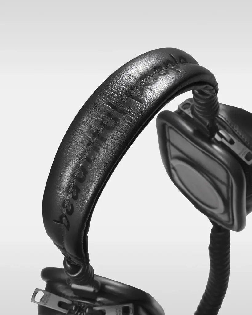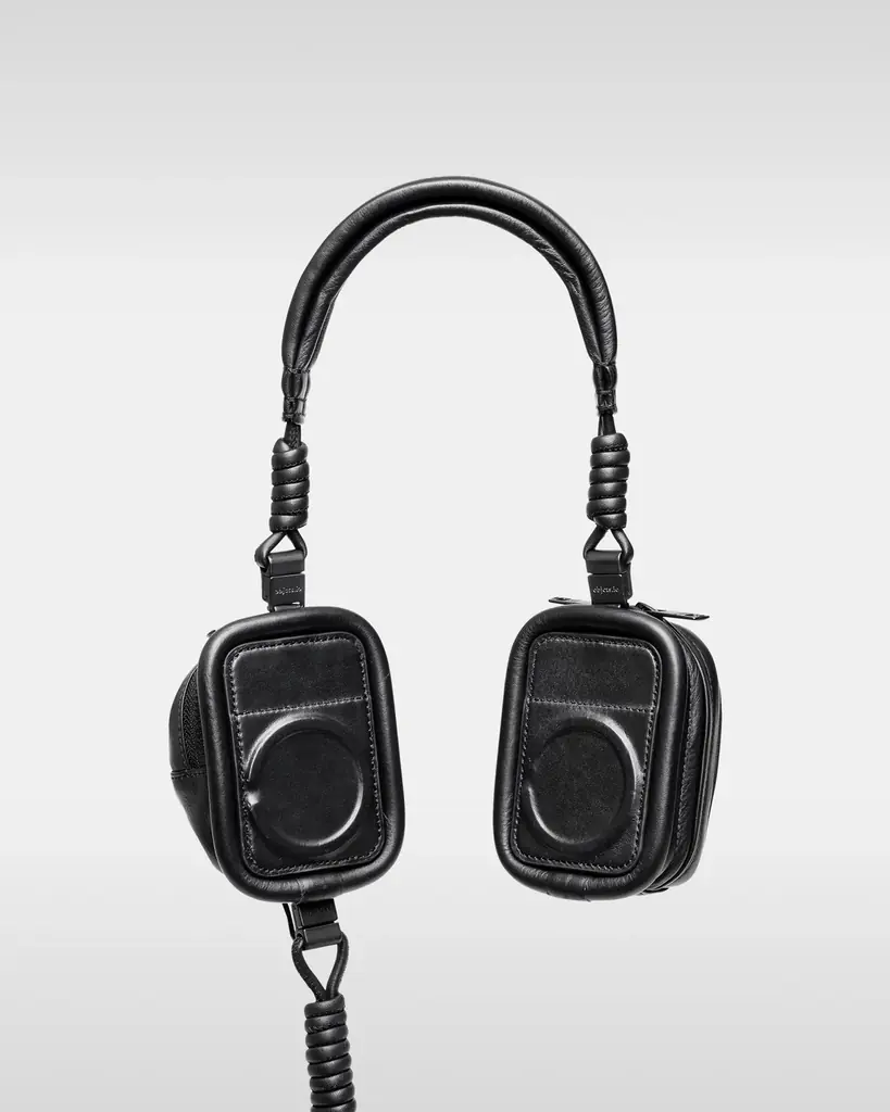 コラボレーションで発表されたのは、黒電話やヘッドフォンをモチーフにした3型のレザープロダクトだ。objcts.ioのテックフレンドリーな設計と、beautiful peopleの過剰なまでの装飾を生かす「OVER-ENGINEERING」の概念が掛け合わされている。