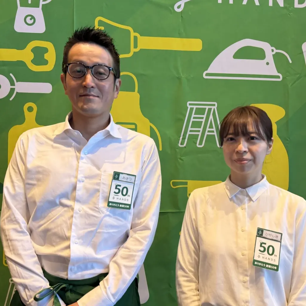 2026年8月に迎える創業50周年を記念した要素も会場に取り入れられ、記念ブースが設けられました。記念ブースには歴代ユニフォームの展示が行われ、ハンズの歩みを視覚的に示す構成となっていました。周年を控えた年に開催された今回の展示は、過去から現在までの連続性を感じさせる内容です。