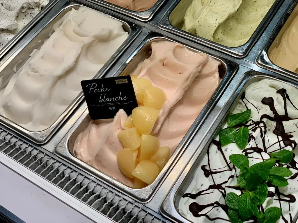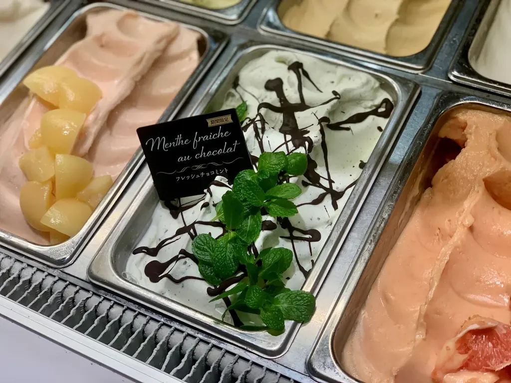 | ジェラート | 全18種類(店内製菓専用厨房で手作り)、新フレーバー:フレッシュチョコミント・白桃・青梅 |