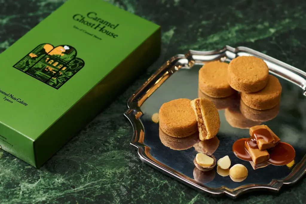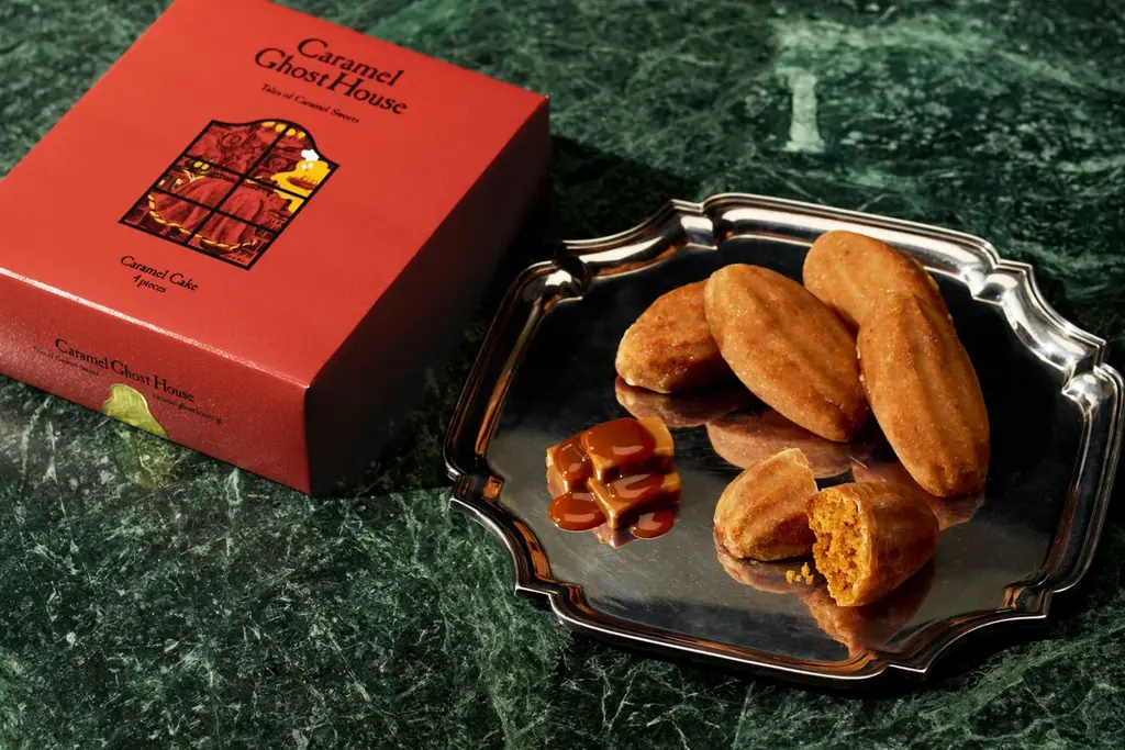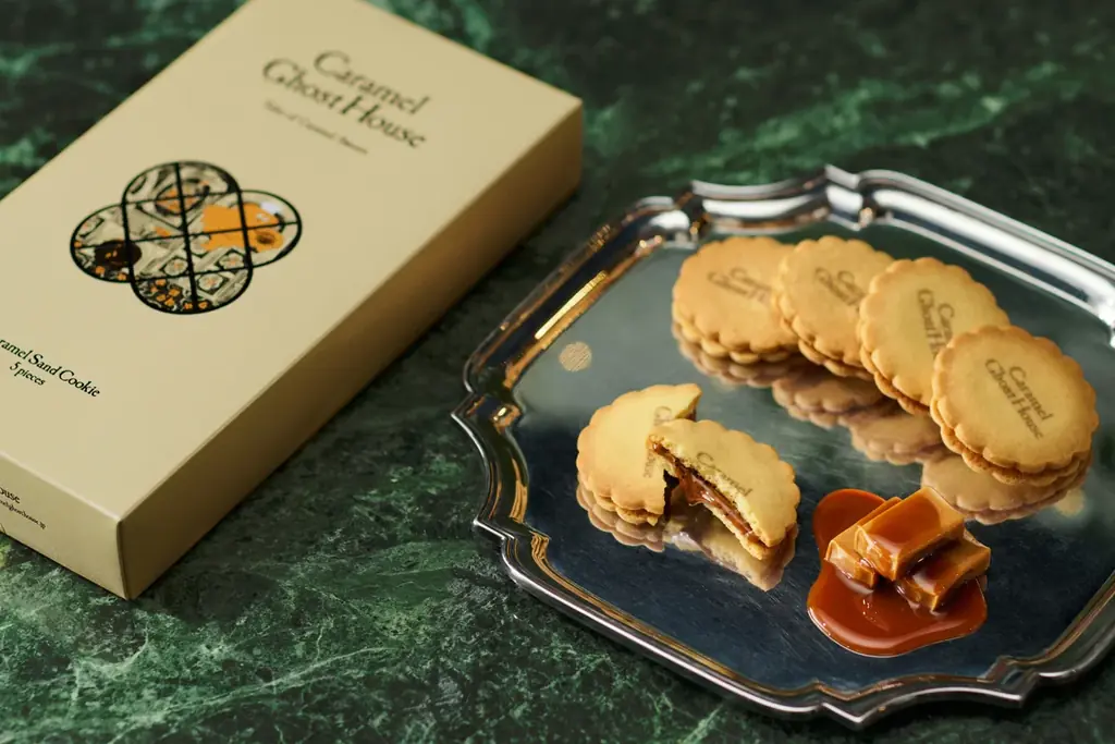 ブランド説明文には「芳ばしく甘い薫りを一面に漂わせ、オバケはただ丁寧にキャラメルを煮詰める。そして紅茶葉をひとつまみ。上品な仕立てのキャラメル菓子がひとつまたひとつとテーブルを彩ります」と記載されており、商品の風味設計とつながる演出が施されています。
