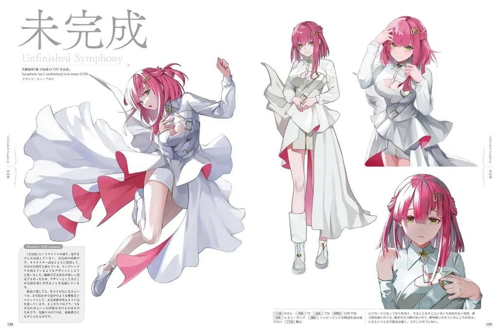 ゲーム『takt op. 運命は真紅き旋律の街を』は、2024年にサービスを終了した作品であり、音楽が失われた世界を舞台に、クラシック音楽を中心とした楽曲や歌劇の力を宿す少女たち「ムジカート」と、それを導く「コンダクター」が登場しました。本書は、その世界観とキャラクター群を視覚的に再整理する試みであり、プロジェクト内でイラストレーターLAM氏が描いたビジュアルを中心に編纂されています。