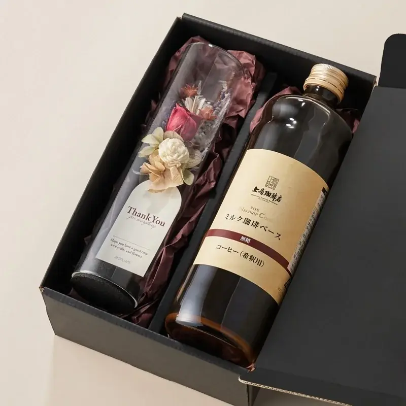 | 上島珈琲店 ミルク珈琲ベース&フラワーギフト | ミルク珈琲ベース(希釈)600ml、母の日フラワーボトル(ローズ)、専用ギフト箱 | 4,200円 | 無糖/加糖から選択 | 送料無料、母の日デザインシール選択可、数量限定 |