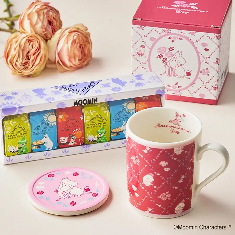 | ムーミン母の日ギフト(マグ&コースター) | CAFE@HOME ムーミン谷 6杯分、Moominmamma’s Day マグ(ピンク)、吸水タイルコースター(ピンク) | 5,300円 | 選択肢なし(セット品) | 送料無料、フレッシュキューブ採用、数量限定 |