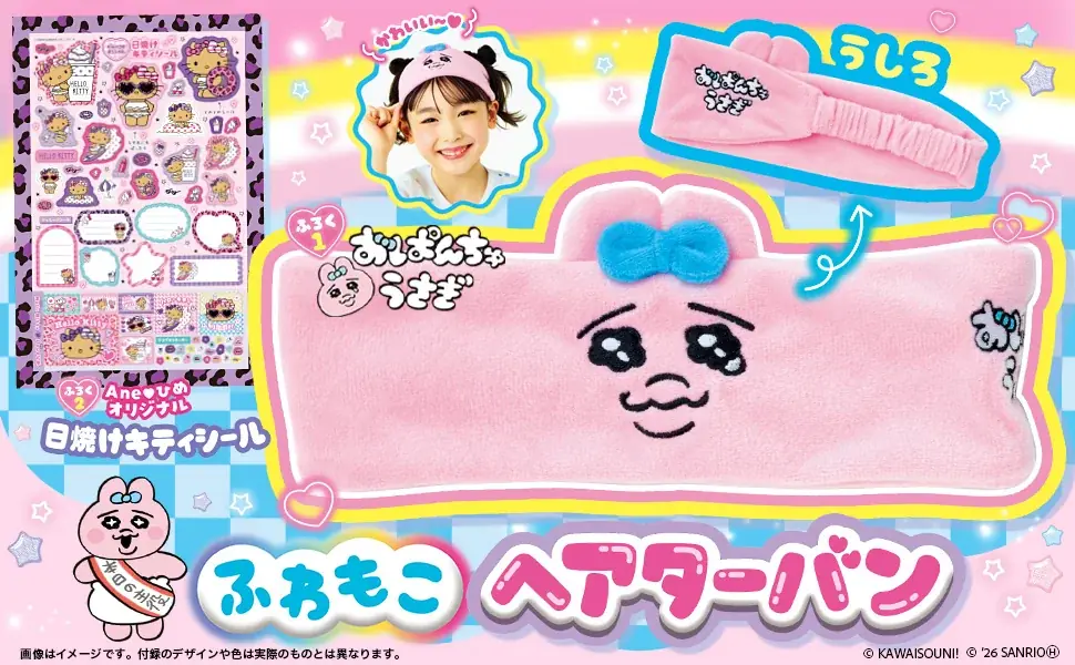 今号の大きな見どころは、豪華2大付録です。1つ目は人気キャラクター『おぱんちゅうさぎ』をモチーフにしたヘアターバン、2つ目はAne♡ひめオリジナルの『日焼け キティシール』です。付録は実用性とコレクション性の両面を意識して制作されています。