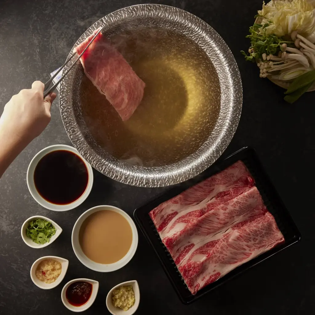 - 利用形態:コースは120分制。前半100分はしゃぶしゃぶ・すき焼きの食べ放題を楽しみ、後半20分で抹茶実演を実施。本コースはグループ全員での注文が必要。