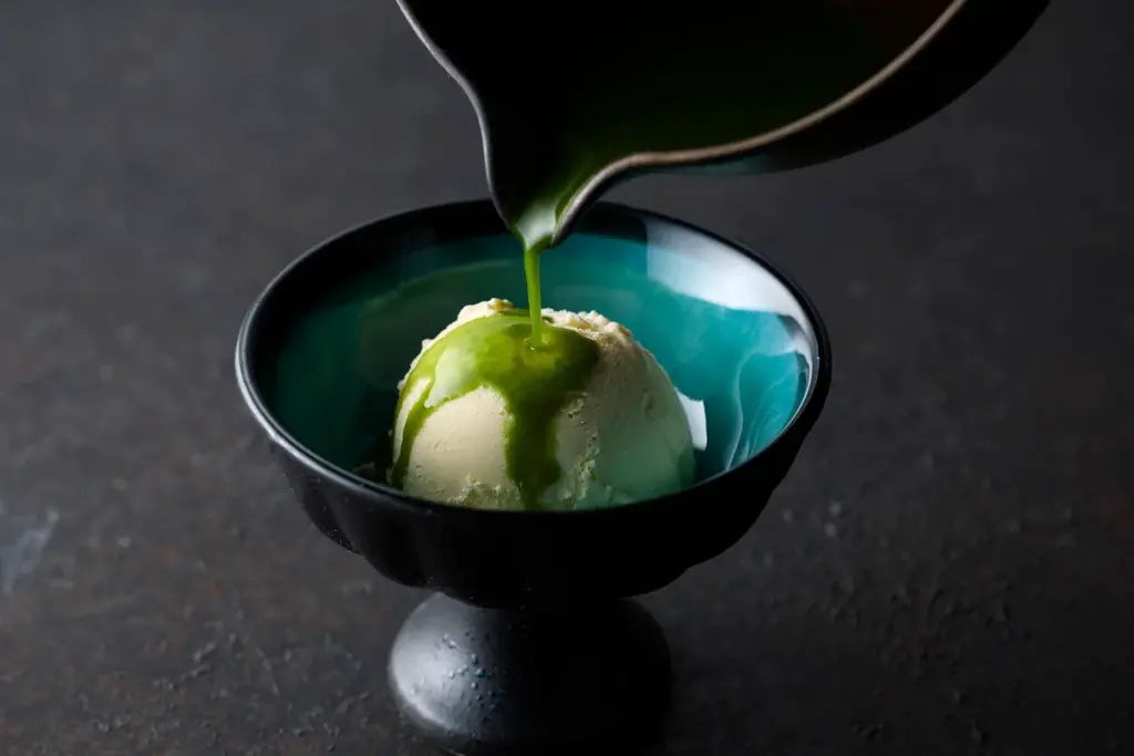 スタッフは各テーブルに回り、茶筅(ちゃせん)を使って人数分を一杯ずつその場で点てて提供します。出来立ての抹茶を間近で見ることができ、視覚・嗅覚・味覚を同時に体験する構成になっています。