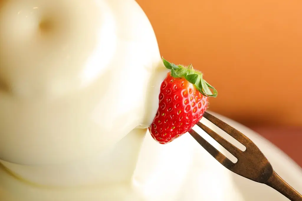 今回のビュッフェでは、いちごの多彩な味わいを引き立てる演出が複数用意されています。目を引くのは、真っ白に輝くホワイトチョコレートファウンテンで、いちごをくぐらせればフォトジェニックな仕上がりになります。また、毎回好評の「フリーカットケーキ」は来場者が好きな形・サイズに切り分けられるため、ビュッフェならではの楽しみが味わえます。