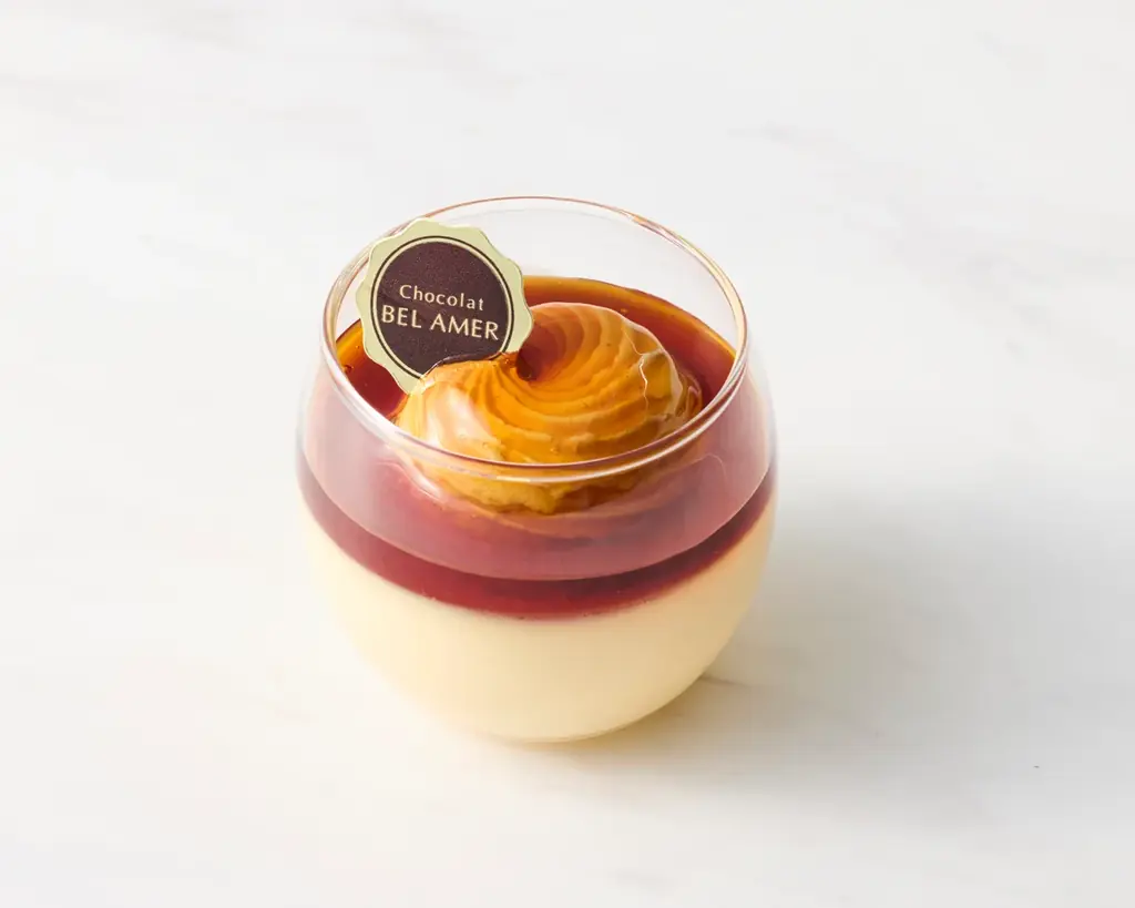 ブランプリンは、ホワイトチョコレートを使用したプリンで、なめらかでとろけるような口当たりが特徴である。ホワイトチョコレートの生クリームを重ねることで軽やかさとコクの両立を図っている。