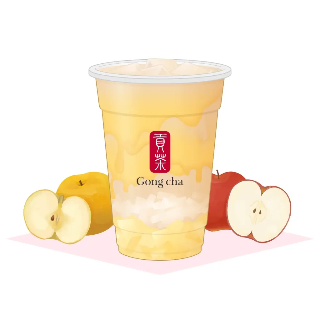 - 秋に旬を迎える林檎と梨を主役にしたさわやかなミルクティー。華やかなアールグレイティーをベースに、みずみずしいりんごソースと梨ゼリーを合わせ、ナタデココをトッピングしてフルーツの味わいと食感の両方を楽しめる一杯です。