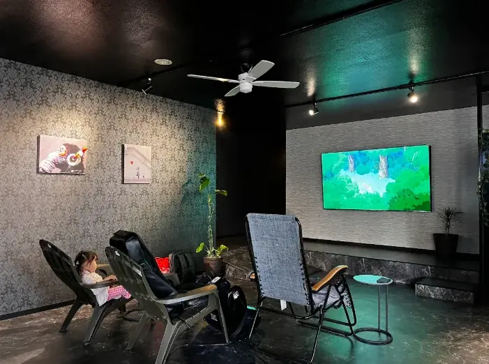 これらの個室は周囲を気にせず自分たちのペースでサウナ・水風呂・休憩を完結できる設計であり、従来の大浴場型温浴施設とは利用体験が異なります。室内の設備は映像視聴と水回り、休憩機能まで網羅されており、小人数での滞在を前提に据えた仕様です。