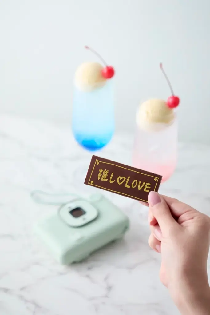 | セット内容 | 推し活フロート1杯(10色からチョイス)、自筆メッセージチョコレートプレート1枚、チェキ(instax)撮影1枚 |