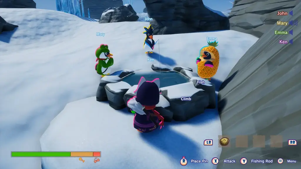 - 主要アクション: アイスアックスでの登攀、釣り竿での救助、宝箱からのアイテム獲得