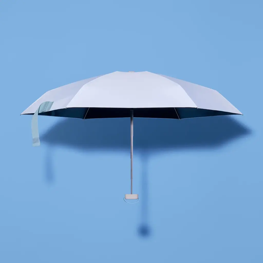 内容:UVカット率99.9%、UPF50+、遮光率99.9%、遮熱効果。防水・撥水加工の生地裏にコーティングを施し紫外線をカットする仕様。持ち運びに便利なミニサイズ。