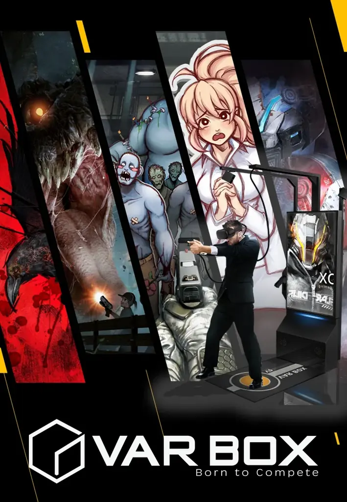 世界で展開されているVR-eSportsアーケードシューターです。実銃を模したガンコントローラーを用い、ゾンビや恐竜と戦うモード、射的、PvPマルチプレイなど4種類のゲームを収録しています。通信対戦を含めた対人競技性が魅力です。