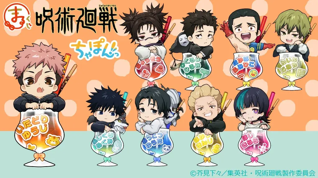2026年3月27日(金)正午より、インターネットで購入できるオンラインくじサービス「まるくじ」にて、TVアニメ『呪術廻戦』を題材にした新規オリジナルグッズがラインナップされたくじ『死滅回游』【ちゃぽんっ!】の販売が開始されました。今回のくじはキャラクターたちがカラフルなドリンクに“ちゃぽんっ”と浸かった可愛らしいビジュアルを新たに描き起こし、そのイラストを用いたグッズで構成されています。