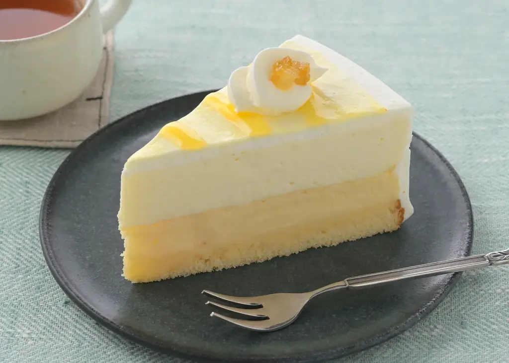 - スポンジと、まろやかな酸味のレモンチーズカスタードを重ねる二層構成