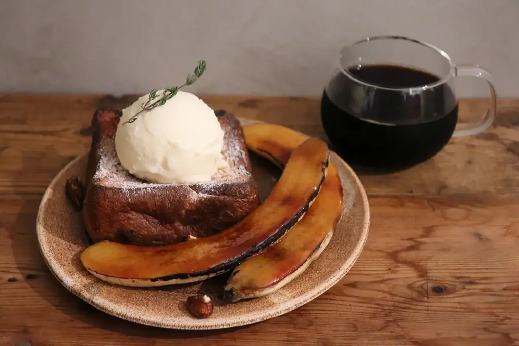 | 看板メニュー | フレンチトースト(パンとエスプレッソとの食パンを使用、アパレイユに一晩浸す) |