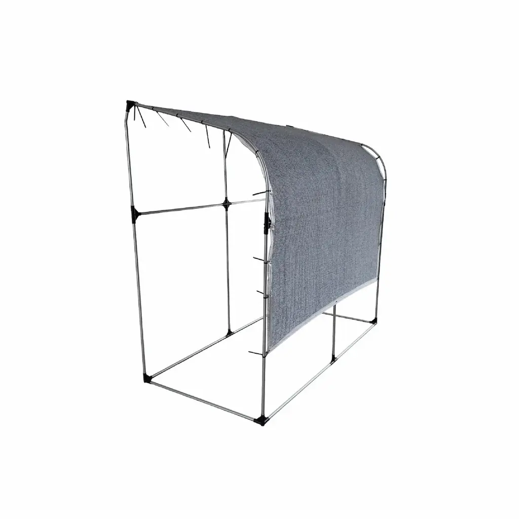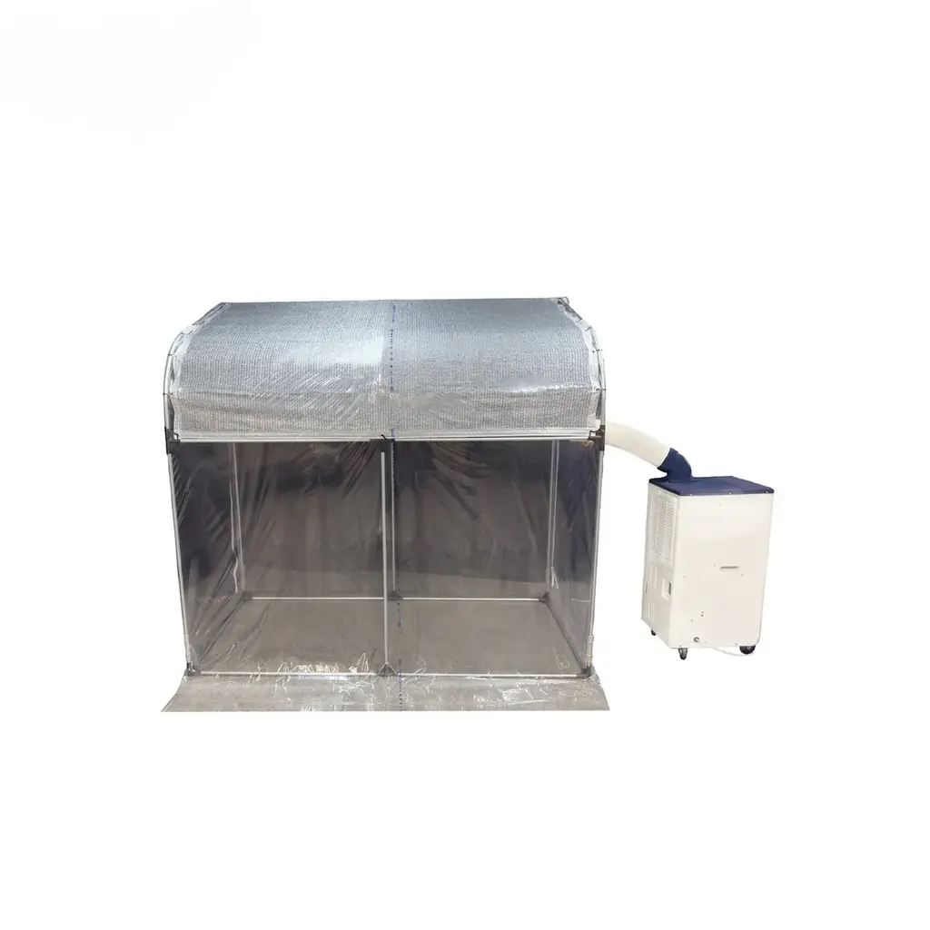 夏場はスポットクーラーを用いて冷却空間として、冬場はハロゲンヒーター等を稼働させて温室として利用できるため、季節に応じた柔軟な運用が可能です。ただし、スポットクーラーおよびハロゲンヒーターは付属しておらず、屋内使用を想定しています。
