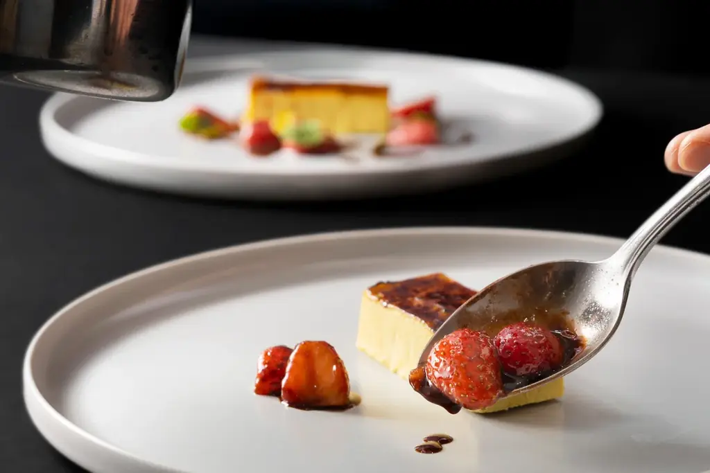 - 実演:苺のソテーとピスタチオのカタラーナ