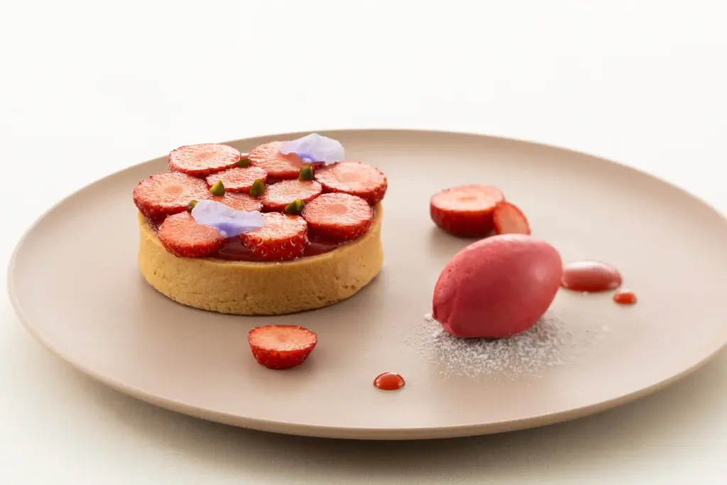 タルトフレーズは、瑞々しい苺とサクサクのタルト生地の食感を愉しむ春の定番。フェア期間中を通じて特別提供される実演要素の一つです。