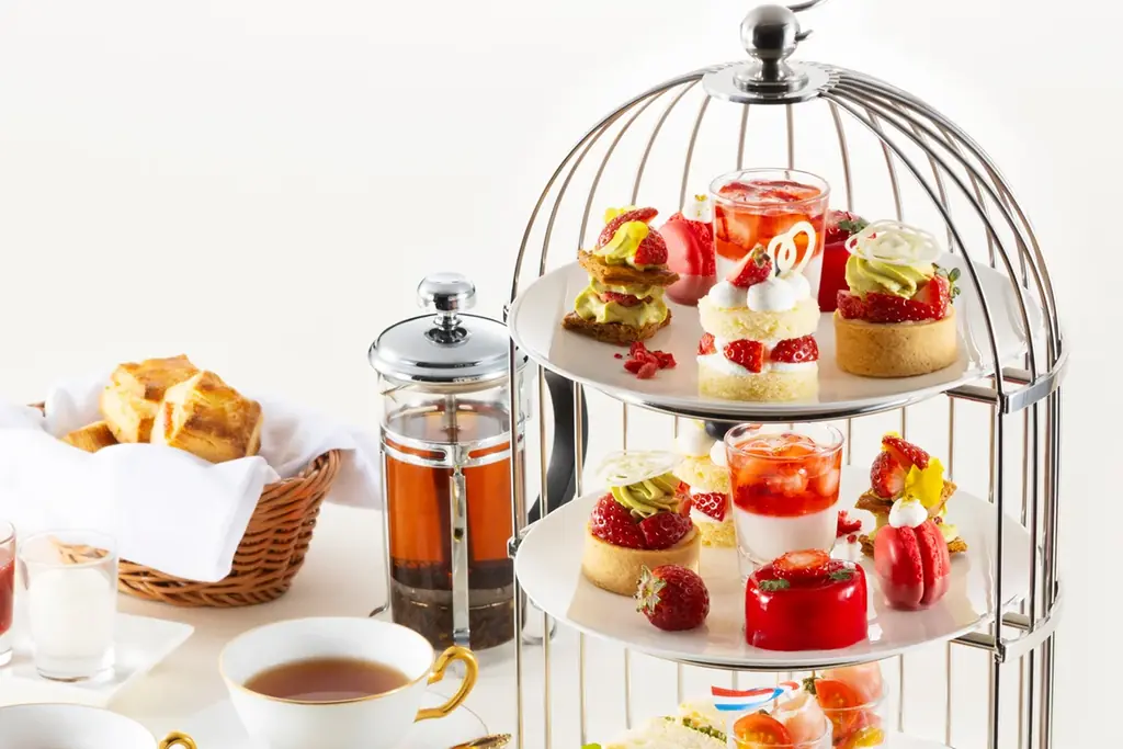 本館1階のロビーラウンジ ミザールでは、苺尽くしの「アフタヌーンティーセット」がリニューアルされたスタイルで提供されます。スコーンは食べ放題で、1日30食限定の設定です。提供時間やメニューは明確に定められているため、来訪前に利用条件の確認が推奨されます。