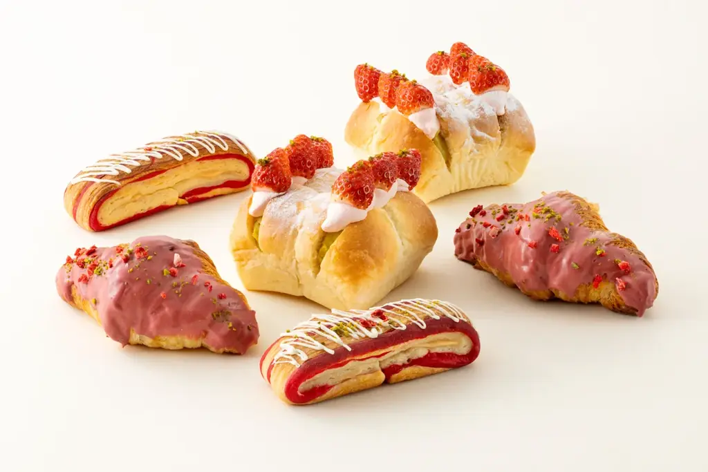 本フェアは、ノーザンテラスダイナー、ロビーラウンジ ミザール、ホテルショップ ザ・ベーカリー&ペイストリーといった館内複数の施設で、苺とピスタチオを組み合わせたスイーツとブレッドを提供する期間限定の企画です。春らしい紅と緑のコントラストを活かした商品構成で、出来立ての実演メニューやテイクアウト商品まで、多彩な楽しみ方が用意されています。