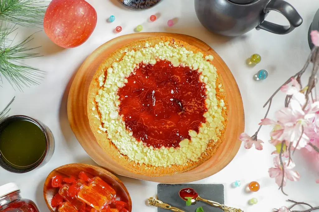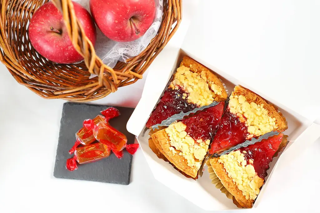 パイはサクサクに仕上げるための生地作りが基本で、トッピングされたジャムとみすゞ飴は焼成工程で素材の風味を留めつつも食感変化を生むよう配置されています。双方の“手作り”へのこだわりが直接的に味の特徴へ反映される設計です。