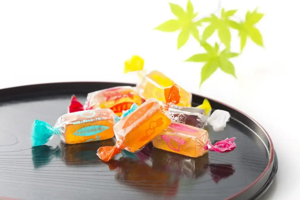 - 国産果実を寒天・グラニュー糖・水飴で固めた和風ゼリー菓子。明治・大正期より飯島商店が製造。今回はパイとともに焼き上げることで新しい食感を演出。