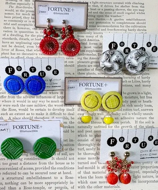 「FORTUNE」はハンドメイドアクセサリーや雑貨を集めるショップで、ヴィンテージパーツやガラスボタンを用いたアクセサリーなど、時と場所でしか出会えないラインナップが特徴です。両者のブースでは、上質さや一点物としての魅力を兼ね備えたアイテムが揃います。