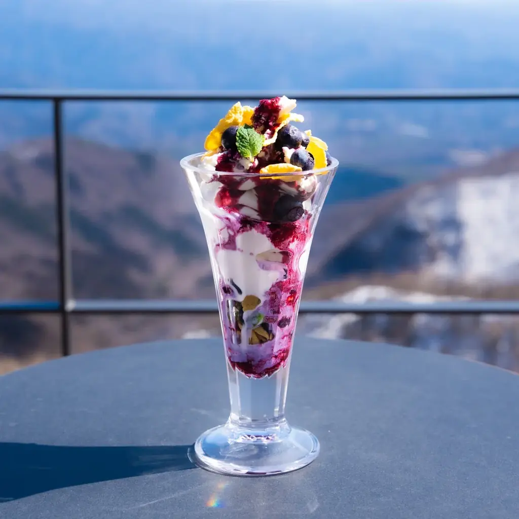 - あかぎのブルーベリーチーズパフェ:看板の「あかぎのソフトクリーム」をベースに、ThreeBrownのチーズや、はなぶさ有機農園のブルーベリーを使用。地元食材を活かしたパフェです。