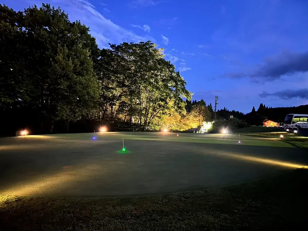 ゴルフ場練習グリーンではLEDボールを使ったナイトパター体験を実施する。ライトアップされたグリーンで夜風を感じながらプレーする内容で、初めての方やファミリーでも参加できるよう配慮されている。
