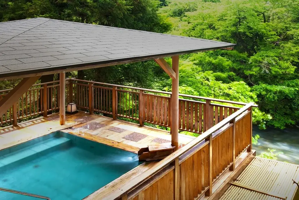 | 主な料金(1泊2食、税・サービス料込、入湯税150円別) | 2名1室:26,500円~、3名1室:24,500円~、4名1室:23,500円~(渓流望む和室の一例、曜日・シーズン・客室タイプにより変動) |