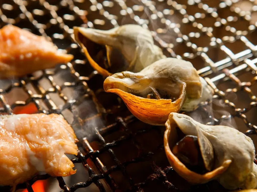 - ライブキッチンと炉端コーナーで、注文を受けてから調理し席へ提供。焼きたての魚介類が中心です。