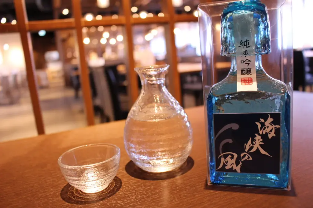 - 新鮮な魚介に合う日本酒やワインを有料で提供。海峡の風オリジナル日本酒もラインナップされています。