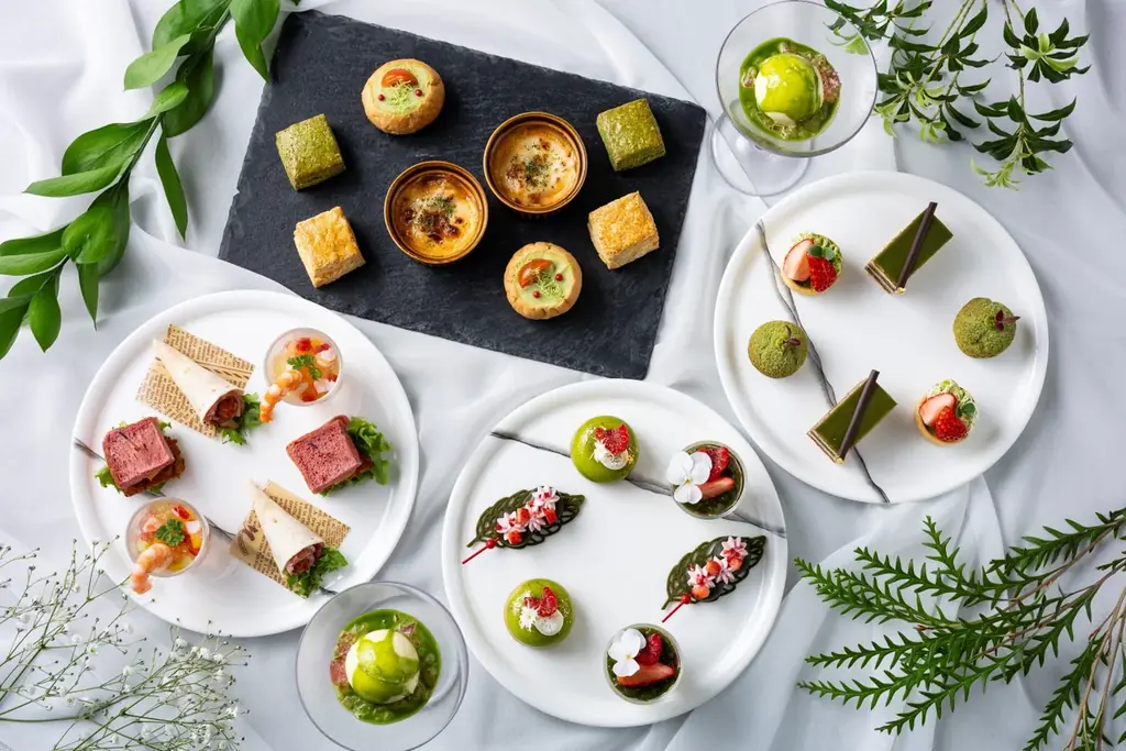 さらに、本プラン限定のドリンクとして福寿園の「抹茶入り煎茶 緑扇」がフリーフローのドリンクメニューに加わります。抹茶風味のスイーツとの相性を考慮したセレクションで、優雅な初夏のひとときを演出します。